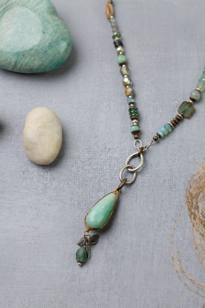 Venetian Dreams 31-33" Abalone Shell, Fluorite, Roman Glass Statement Necklace