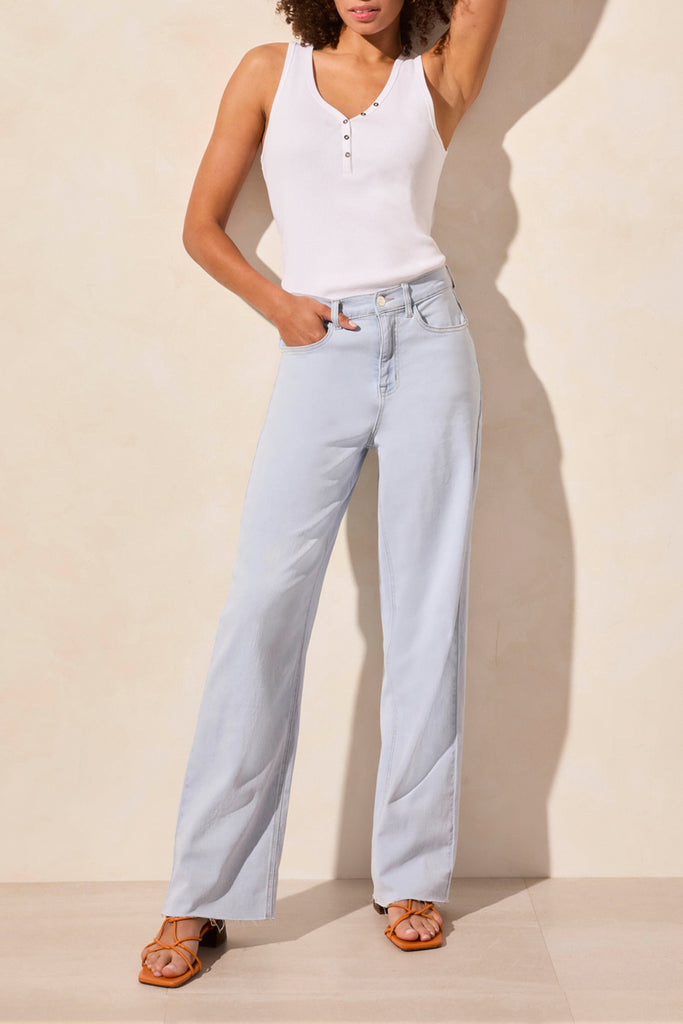 Elevate your style with Brooke high rise jeans - a first-class choice for those who deserve the best. Crafted with lightweight stretch denim, these jeans exude a vintage vibe and boast a button and fly closure, wide leg silhouette, and a 31" full-length inseam that hugs your upper body perfectly. Upgrade your wardrobe and make a statement with these high-quality jeans.