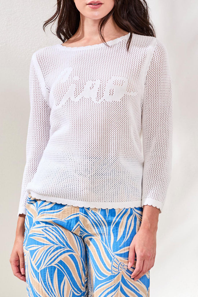 Say goodbye to boring basics. This crew neck sweater features charming "Ciao" embroidery that brings personality to your everyday rotation. Made from soft combed cotton with three-quarter sleeves, it's designed for a relaxed, easy fit that moves with you. Whether you're packing for a getaway, enjoying a breezy evening, or simply seeking comfort without compromise, this lightweight piece delivers the perfect balance of style and wearability.