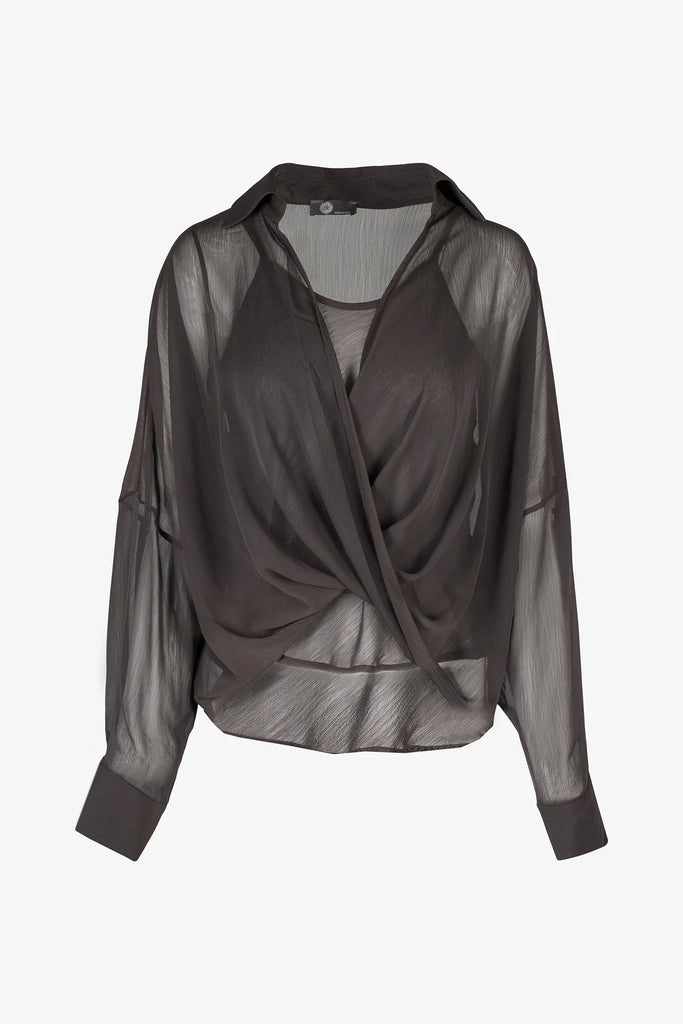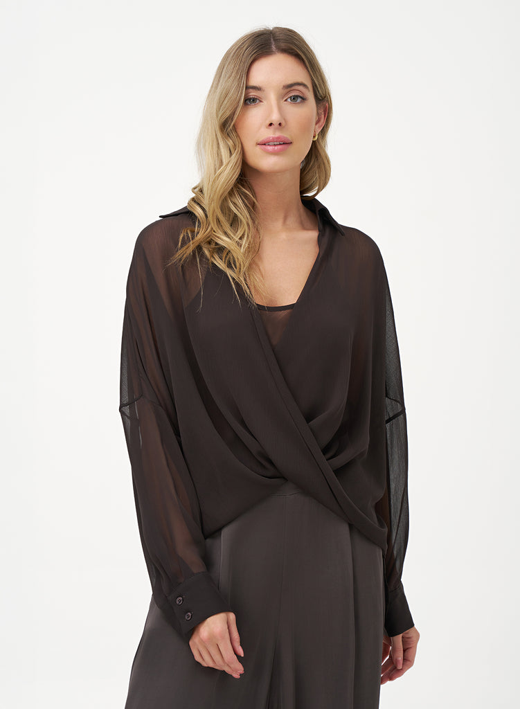 Cocoa Sheer Criss-Cross Blouse with Cami