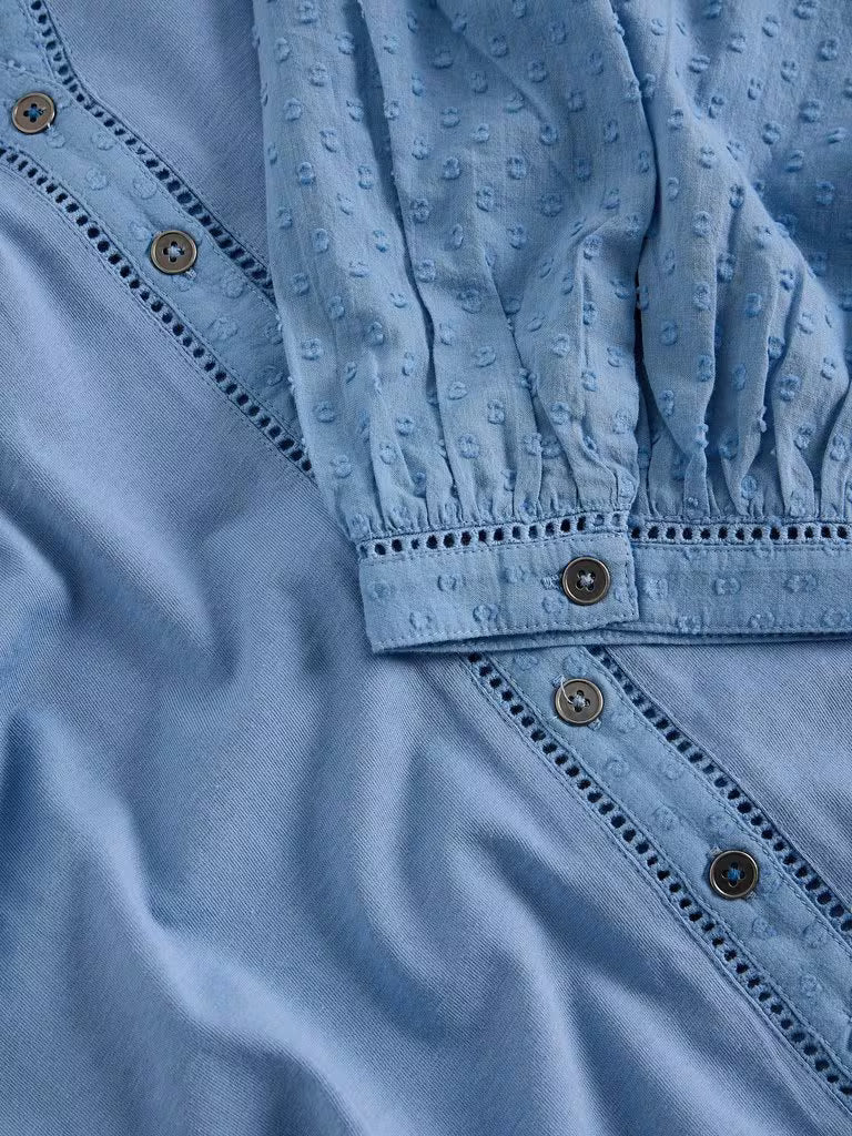 Daisy Dobby Mixed Top - Medium Denim
