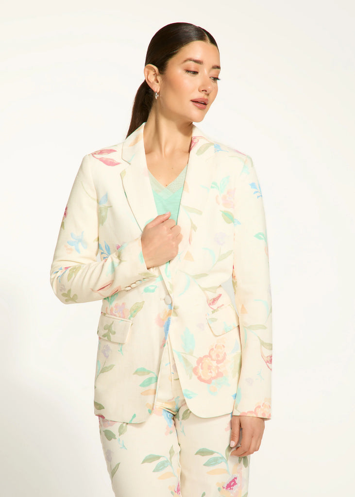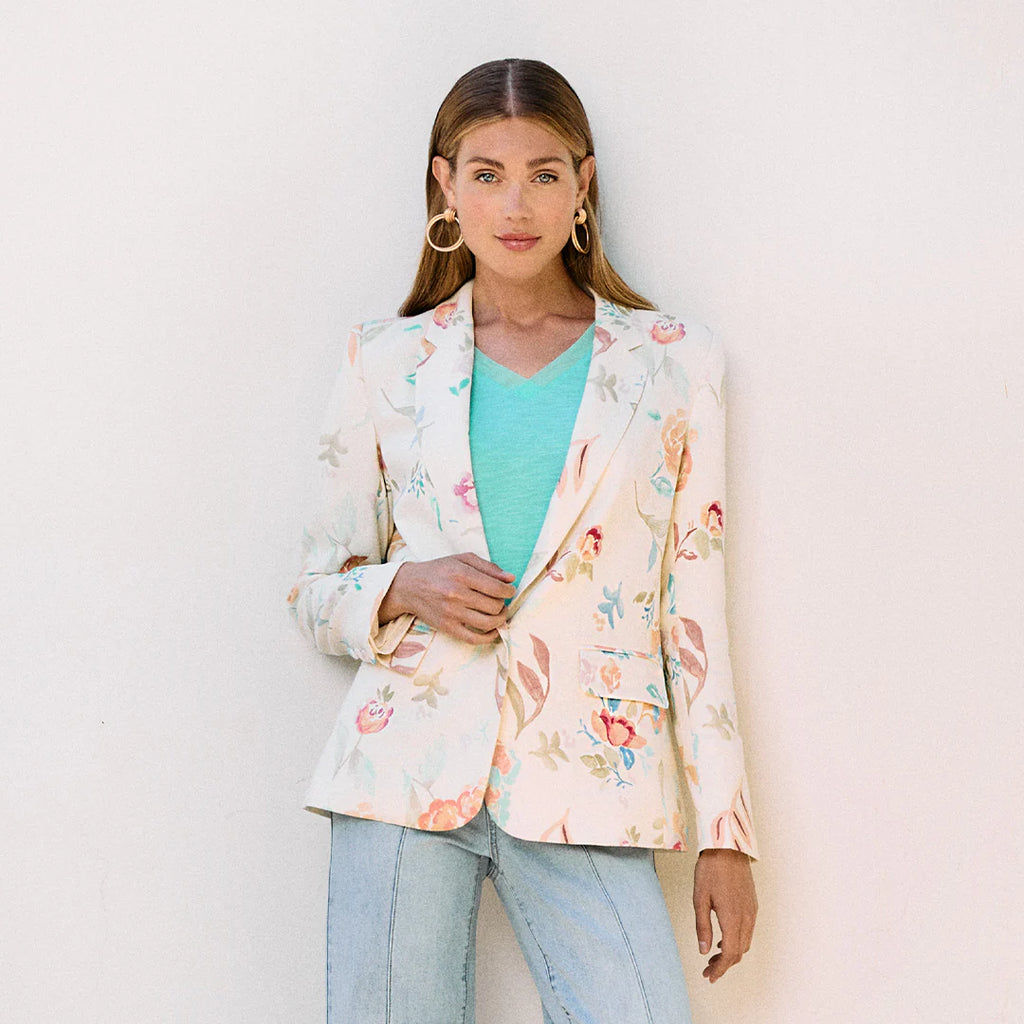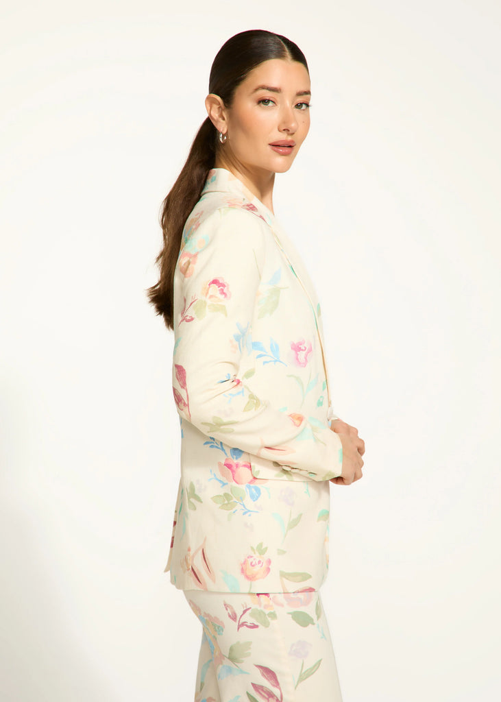 Elevate your spring wardrobe with the Duchess Libby Blazer. The romantic floral print adds a touch of elegance to any outfit, while the neutral ivory make it versatile for any occasion. Stand out in style with this must-have blazer.