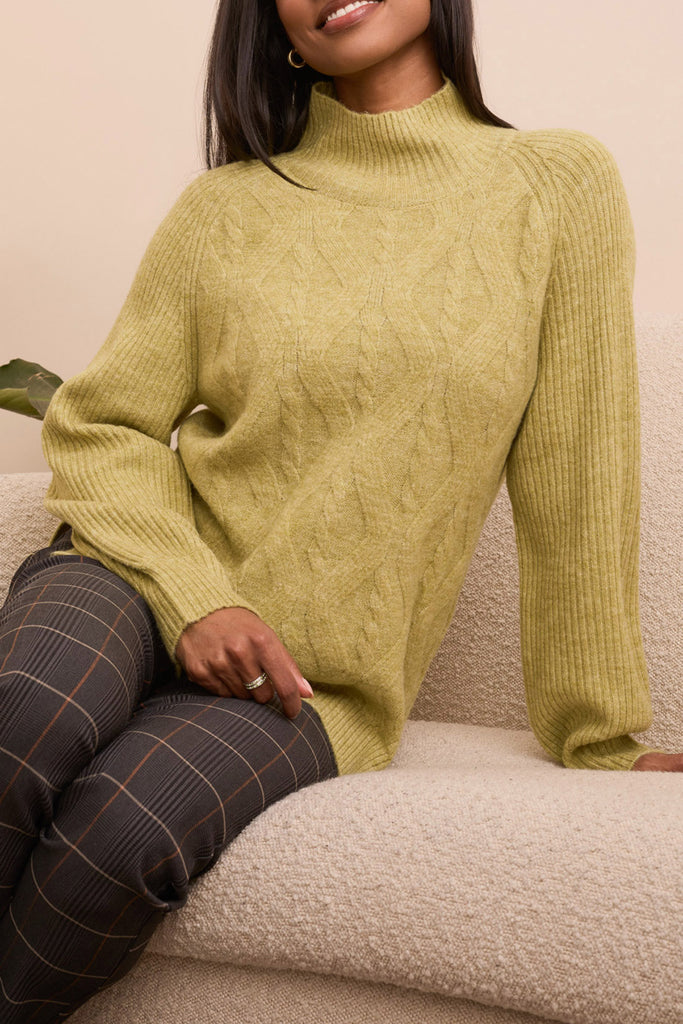 Embrace the season's chill with this thoughtfully designed sweater that combines comfort and style. The soft, textured yarn blend feels wonderful against your skin, while the distinctive mock neck and voluminous puff sleeves bring an air of understated sophistication. Snug fitted cuffs keep everything in place, giving you a polished look that transitions seamlessly from casual to dressed-up occasions.