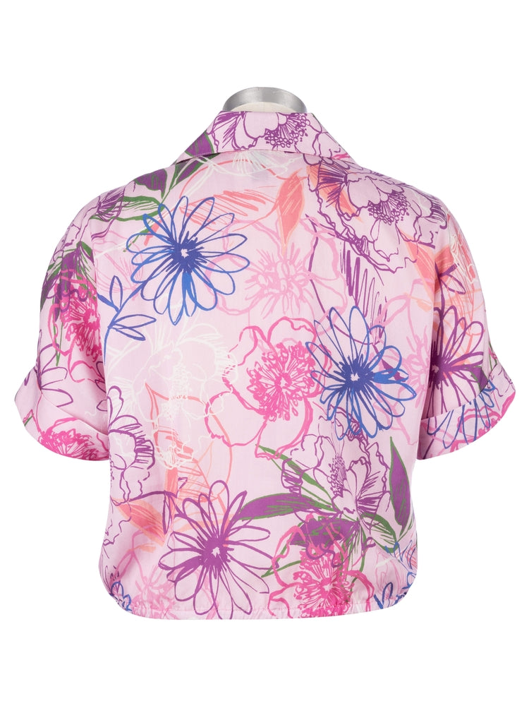 Elevate your spring workwear collection with the Women's Rebel Floral Knot Front Shirt from KUT FROM THE KLOTH. This stylish blouse features short sleeves and a flattering collar, adorned with a delicate floral pattern in a soft pink hue. Crafted entirely from viscose, it offers a light, breathable feel perfect for the season. Closure: Tie closure. Care: Hand wash and line dry.