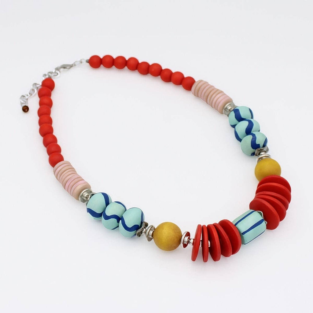This eye-catching necklace combines handcrafted artistry with fearless color and form. Geometric elements in vibrant hues create a dynamic focal point that elevates everyday outfits and special occasions alike. Perfect for anyone ready to express their unique style with confidence, this statement piece invites compliments and celebrates individuality through bold, wearable art.